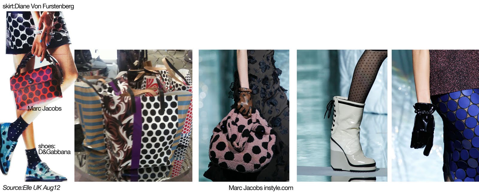 I am not a big fan of the dots myself but this season’s (FW12) new approach to the print kinda got me thinking... I love the elegance of Stella Mac Cartney’s sheer dot underlay detail and the newness of Marc Jacob’s oversized, colourful polka dots mixed with floral and stripes. The new compositions to the polka dot gave a fresh new spin to this trend.